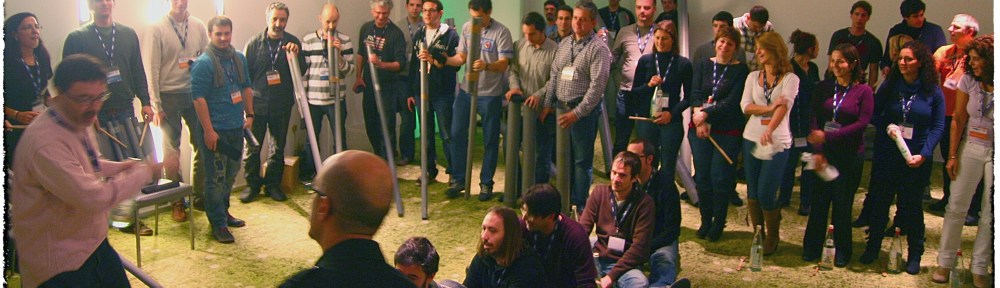 Esta vez hicimos una experiencia musical: la gente de SinfoSALLE, un taller de la escuela universitaria La Salle, nos dividió en dos grupos, nos dieron una serie de “instrumentos informales” (tubos, botellas, bolsas de plástico, cosas así), y nos hizo competir a ver a quién hacía mejor música. O algo parecido.
